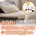 全9色!羊毛混ボリューム敷布団×羽根布団8点セット ボリュームタイプ ダブル ミッドナイトブルー