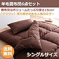 【布団セット】羊毛混布団6点セット〔シングル〕〔ブラウン〕厚さ15cmのボリューム敷布団