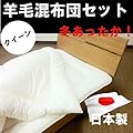 冬あたたか 羊毛混布団セット クイーン 日本製 (掛け布団+敷き布団)