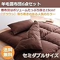 【布団セット】羊毛混布団6点セット〔セミダブル〕〔ブラウン〕厚さ15cmのボリューム敷布団