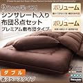 タンスのゲン 超増量ボリュームUP 羽根布団 寝具セット ダブル 8点セット 布団セット 組布団 掛け布団 敷き布団 枕 カバー 収納ケース付き 敷き布団タイプ ブラウン 6119005602