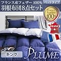 フランス産フェザー100%羽根布団8点セット ベッドタイプ Plume プルーム キング オーガニックアイボリー