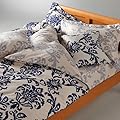 LANCETTI パラッツォ 掛け布団カバー ダブルサイズ 190×210cm : ブルー×グレー ダマスク柄