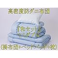 国産 高密度防ダニ布団『洋セット』(掛布団 ベッドパッド 枕)・シングル (ブルー)