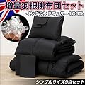 新生活応援セット イングランドフェザー羽根掛布団 9点フルセット シングル 【ブラック】