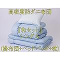 国産 高密度防ダニ布団『洋セット』(掛布団 ベッドパッド 枕×2ヶ)・ダブル (ブルー)