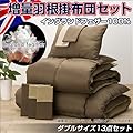 新生活応援セット イングランドフェザー羽根掛布団 13点フルセット ダブル 【ツートン(ベージュ・ブラウン)】